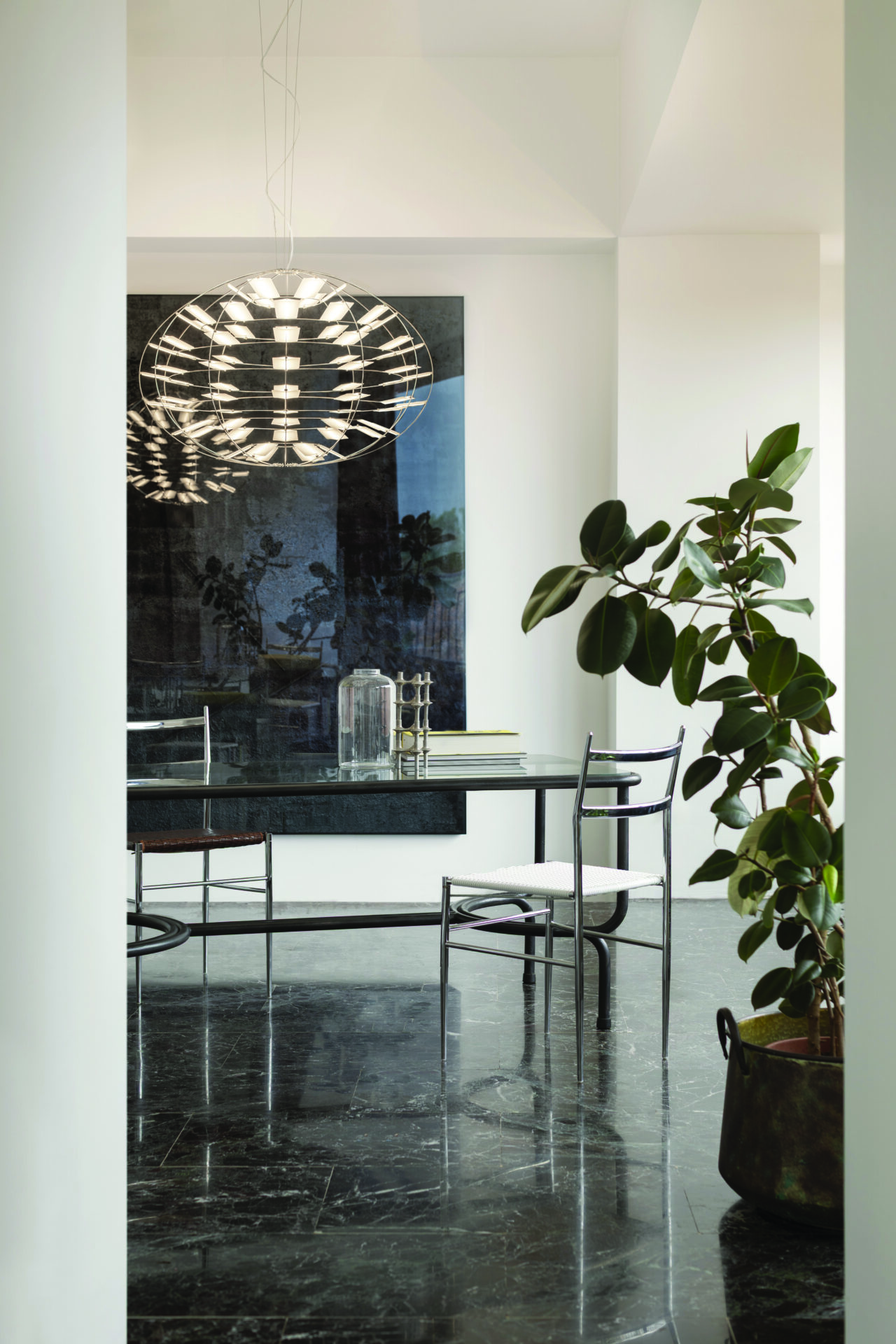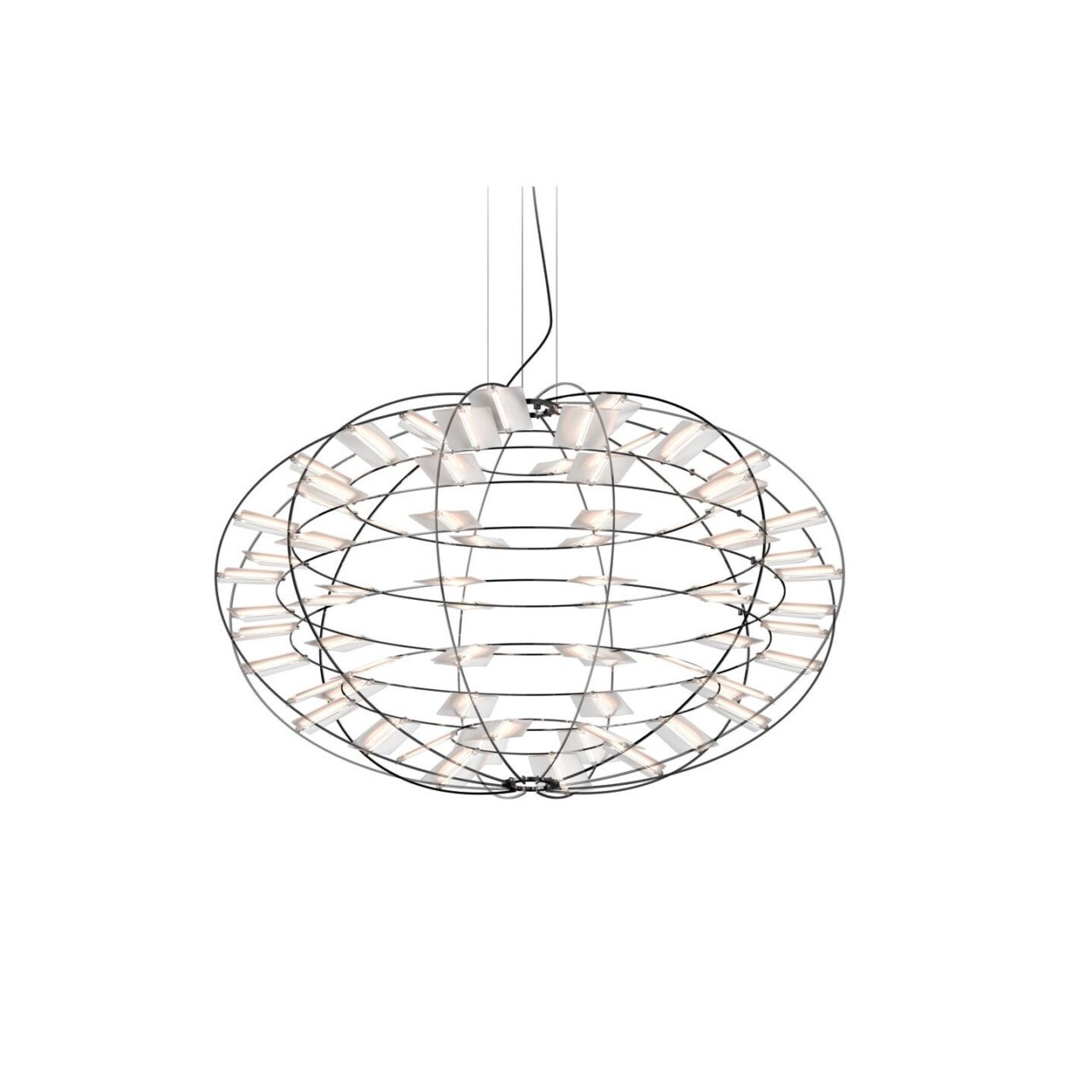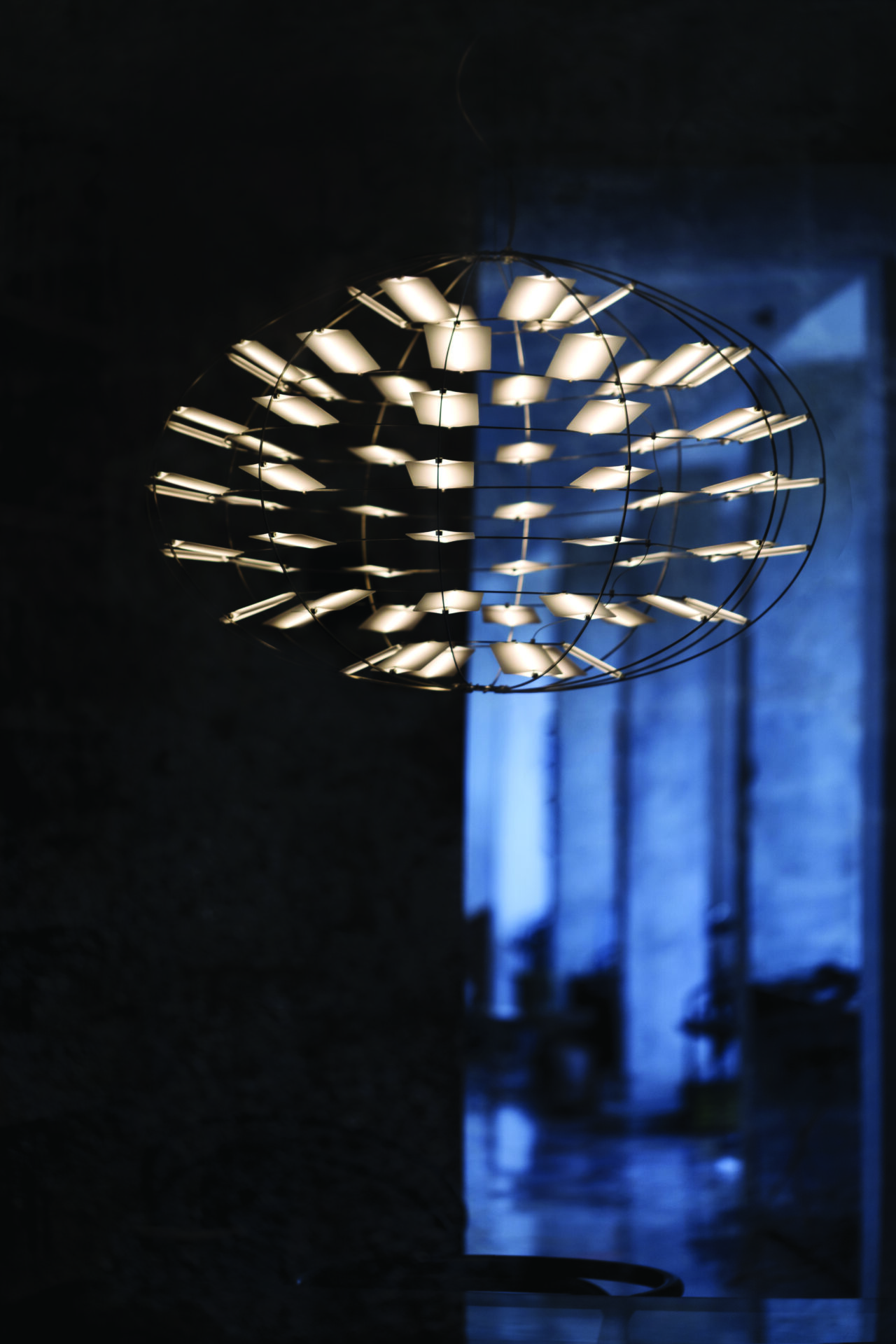 Die Interpretation und Vorhersage von Zukunftstechnologien bilden die Grundlage von Chloris, einem zweijährigen Forschungsprojekt von Arihiro Miyake. Es handelt sich um eine Pendelleuchte, die das Paradigma des atmosphärischen Designs erforscht. Eingefasst in eine leitende Struktur sind einzelne LED-Lichtquellen in Diffusoren aus Polycarbonat eingebettet, die scheinbar schwerelos in der Luft schweben.