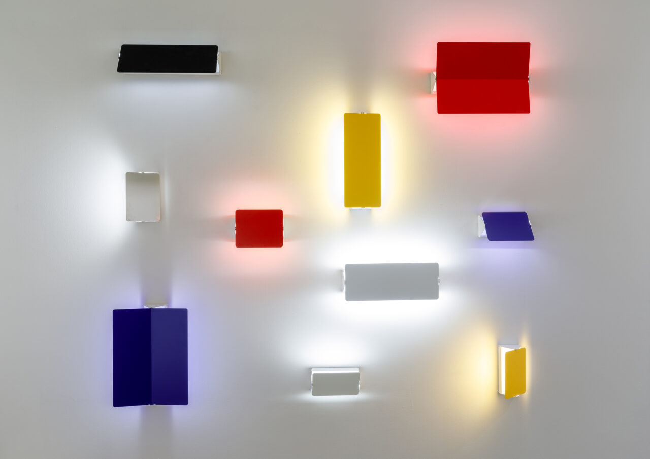 Disegnata da Charlotte Perriand nel 1962 per illuminare il suo chalet di montagna a Méribel nelle Alpi francesi. Una famiglia di lampade da parete dalle forme semplici e colorate. Diffusore “volet” orientabile in alluminio e struttura in metallo. La lampada emette luce indiretta verso la parete e il fascio può essere orientato a piacere.